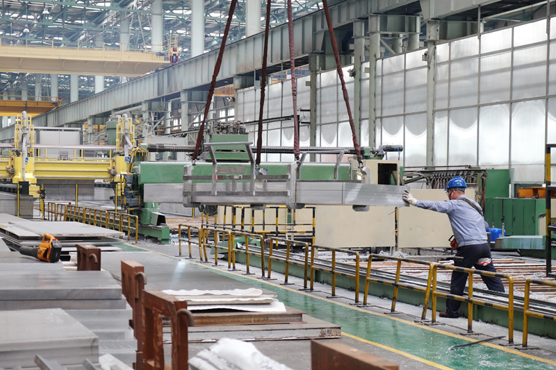 工人在东北轻合金有限责任公司中厚板厂将物料送往下道工序。新华社记者魏海 摄