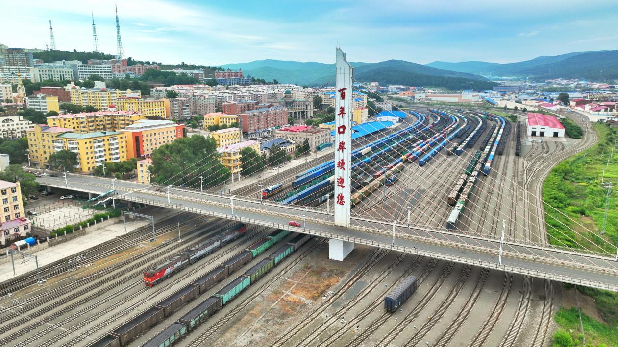 航拍绥芬河铁路口岸