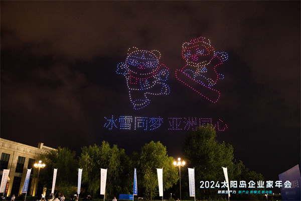 8月23日,2024太阳岛企业家年会特色活动之一,无人机编队表演在松花江畔的太阳岛上进行。本场表演的主题是“新质生产力:新产业、新模式、新动能”。无人机编队通过变幻的图形和光影效果,在夜空中依次展示了大会的标识、主题口号及冰雪运动、亚冬会、马迭尔冰棍等具有哈尔滨特色的画面,呈现了“第二十六届哈尔滨冰雪大世界”和“第三十七届太阳岛雪博会”等哈尔滨特色活动的场景,向世界展示了哈尔滨的独特魅力和创新发展的无限可能。