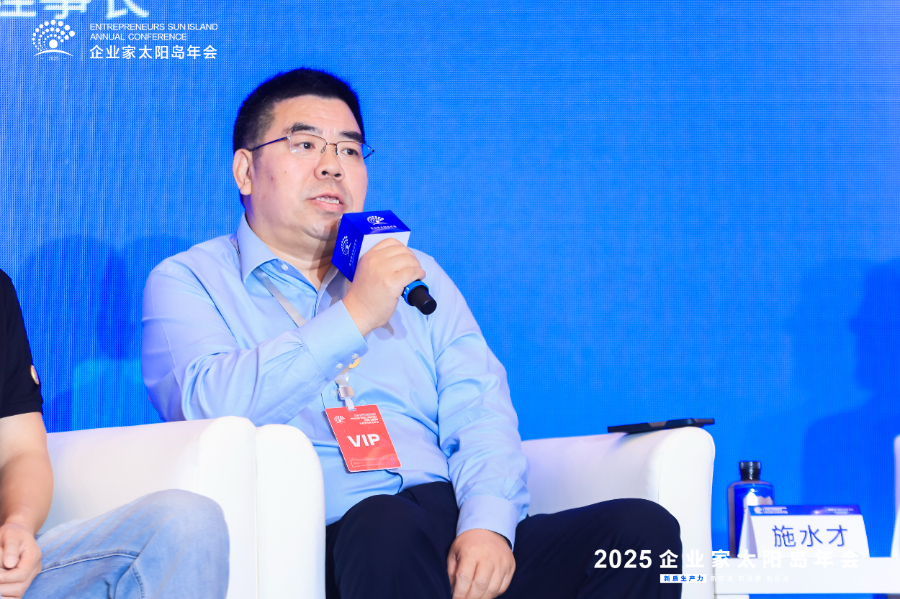 图为拓尔思信息技术股份有限公司董事长、中国软件行业协会副理事长施水才在2025企业家太阳岛年会主论坛思客对话环节进行发言。