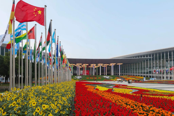 这是2024年11月4日拍摄的第七届中国国际进口博览会举办场地——国家会展中心(上海)外景。新华社记者 王翔摄