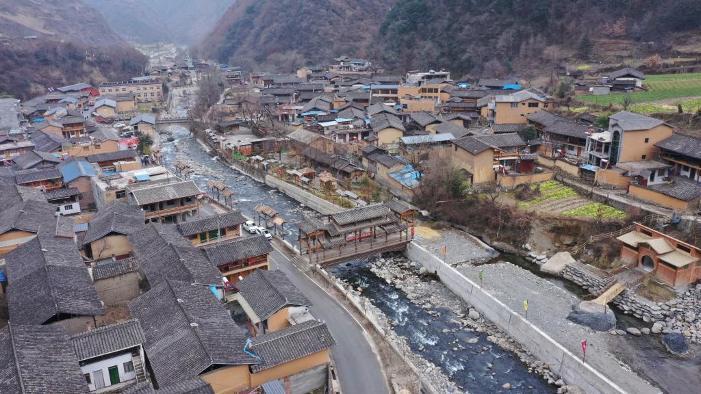 這是1月12日拍攝的隴南市文縣鐵樓藏族鄉草河壩村(無人機照片)。新華社記者 郎兵兵 攝