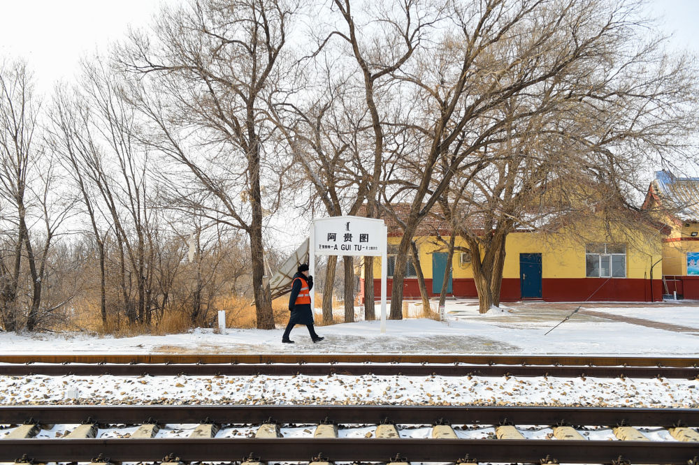 ↑1月22日,裴召勇在阿貴圖站站臺上工作。