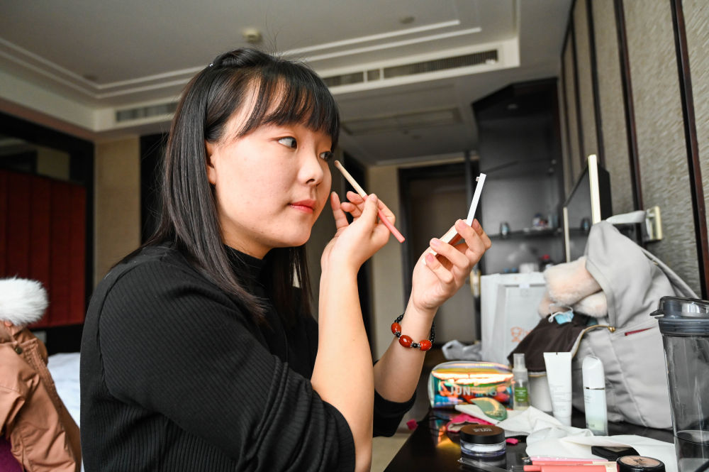 ↑1月23日早,在烏蘭察布市集寧區酒店休息一晚后,張芳化妝準備去看望未婚夫裴召勇。