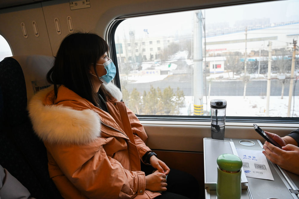 ↑1月22日,張芳乘坐動車從包頭前往烏蘭察布市集寧區。