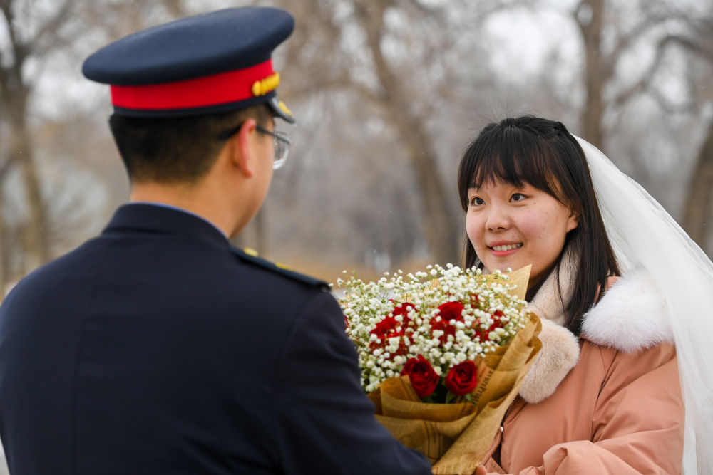 裴召勇的未婚妻張芳是包頭貨運中心大牛地車間的貨運員,兩人工作地點相距約600公里,平時聚少離多。“23日”對裴召勇和張芳來說,意義非同一般。他倆的生日都是在23日,相識也是23日,原本計劃在2021年10月23日舉辦婚禮,但由于疫情和工作原因,他們的婚禮無奈推遲。今年春節裴召勇和張芳都要值班。為了能和裴召勇有一次短暫的相聚,倒休的張芳決定1月23日前往阿貴圖站為裴召勇送去溫暖和愛意。
