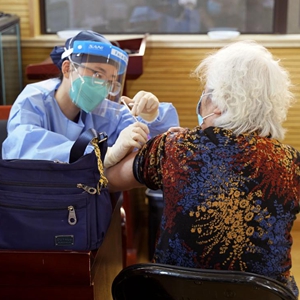在上海,楊浦區長白社區衛生服務中心將疫苗接種服務搬進了養老機構。“謝謝他們能夠到我們這里上門服務?!?5歲老人嚴淑英說。