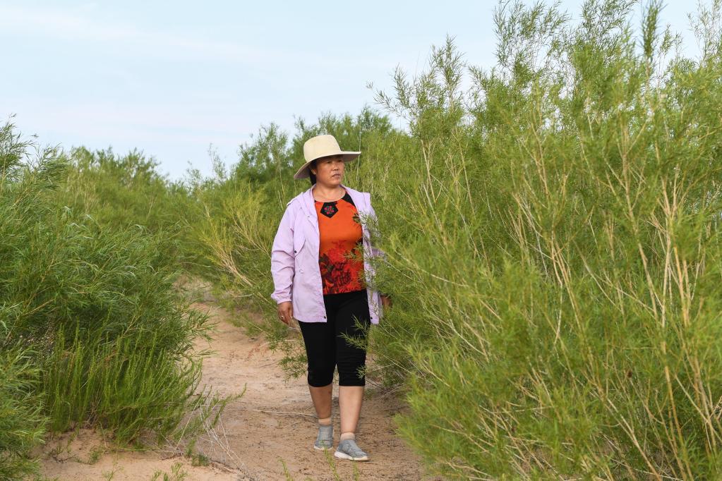 寶秀蘭查看沙地治理情況。(受訪單位供圖)