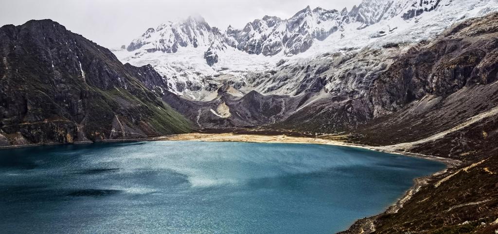 5月1日在西藏山南市從白瑪林錯(cuò)方向拍攝的庫(kù)拉崗日冰川(手機(jī)照片)。新華社記者 沈虹冰 攝
