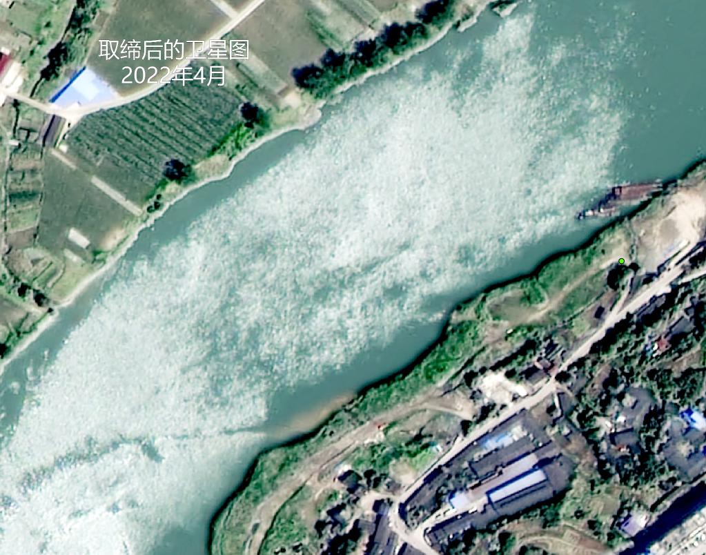 自貢嚴格規范沱江河段大小船只的采砂行為,上圖為河砂石料場取締之前的衛星圖,可以看到沱江邊停滿采砂的大小船只。下圖為項目取締后的衛星圖,河砂石料場不見,沱江兩岸植被逐步得到恢復,江水奔涌而去。
