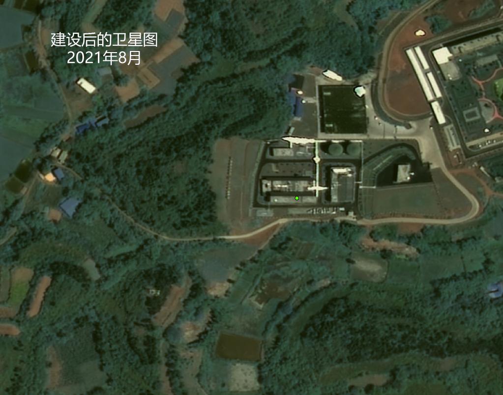 眉山市在仁壽縣建設餐廚垃圾無害化處置項目,著力打造餐廚垃圾收集、轉運、處置體系。上圖為該項目建設前的衛星圖,下圖為項目建設完成后的衛星圖。