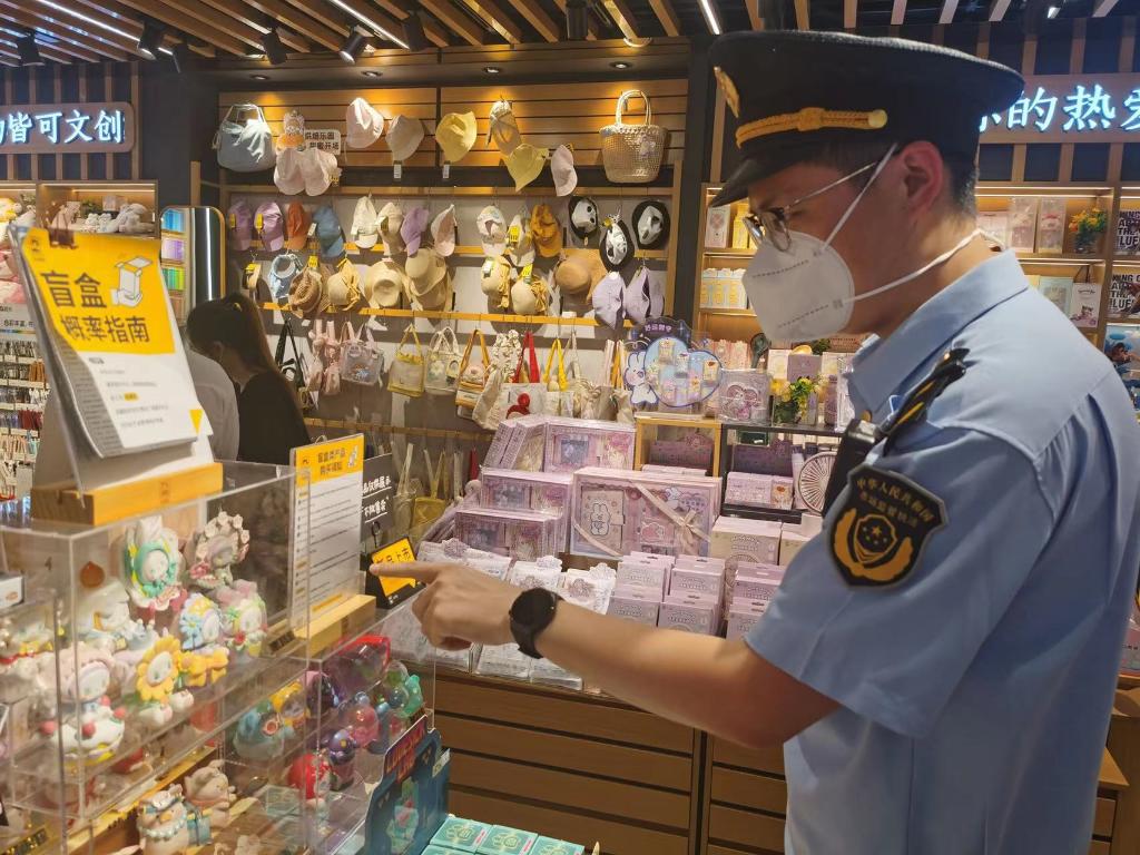 8月2日下午,上海市徐匯區(qū)市場監(jiān)管局組織開展盲盒檢查,圖為執(zhí)法人員檢查盲盒銷售標(biāo)簽。(受訪對象提供)