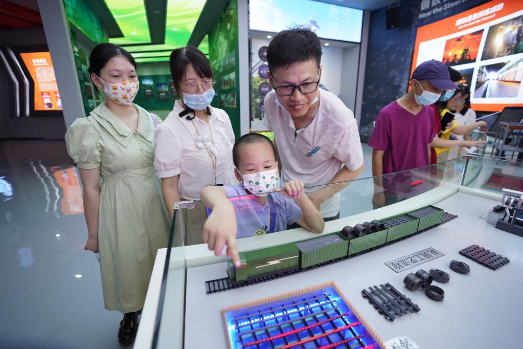 10月3日,游客們?cè)诜酱筇劁摴I(yè)旅游景區(qū)內(nèi)參觀煉鋼流程模型。新華社記者 周密 攝