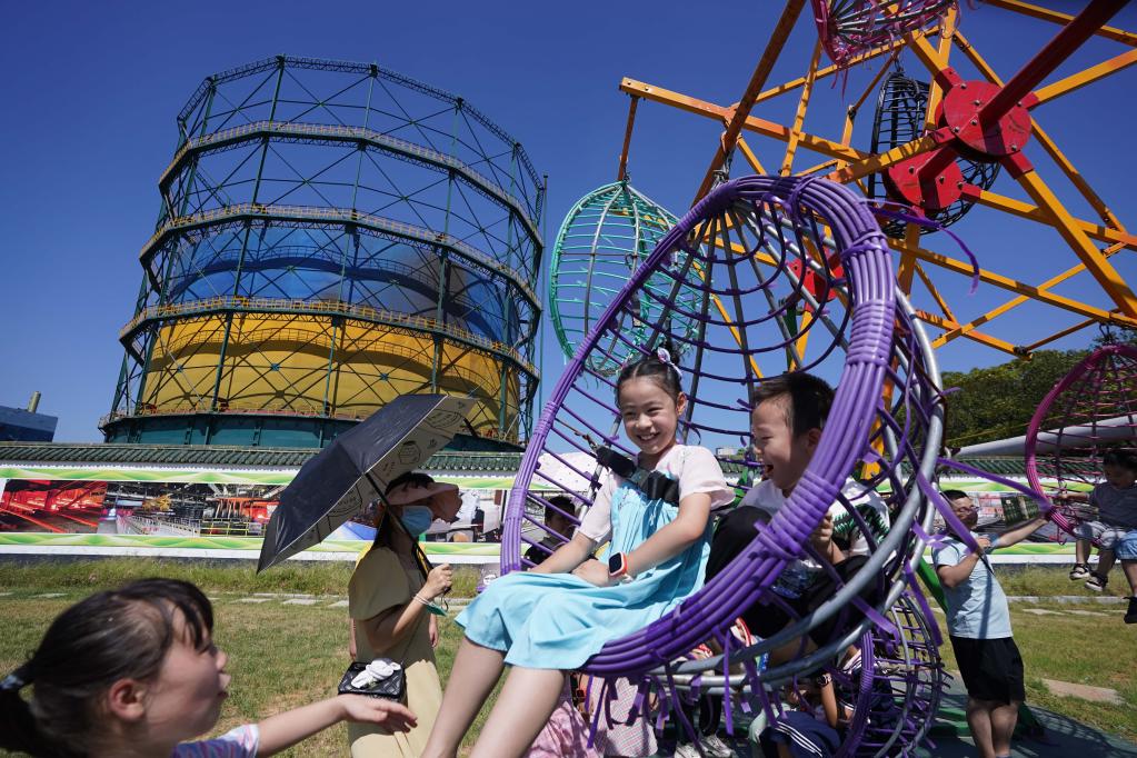 10月3日,游客們?cè)诜酱筇劁摴I(yè)旅游景區(qū)內(nèi)游覽。 新華社記者 周密 攝
