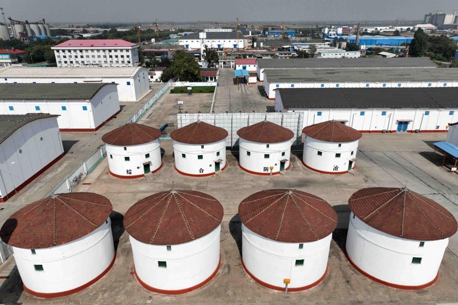 8棟12米高的平房倉坐落在圓形倉的西側。“這是1998年以來陸續修建的,從倉儲設施條件到單倉容量,都超過了之前的糧倉。”尚金鎖介紹,每棟高大平房倉倉容量在1萬噸左右。