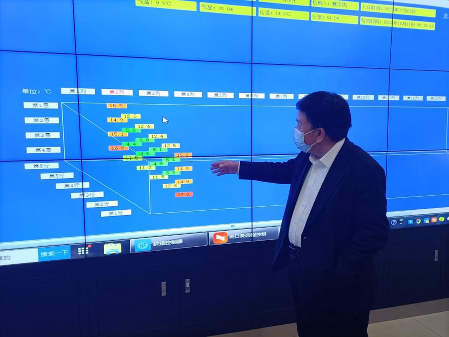 記者在糧情監控室看到,工作人員只需輕點鼠標,智能系統就能調取糧倉數據,保管員不用再頻繁進出倉庫。