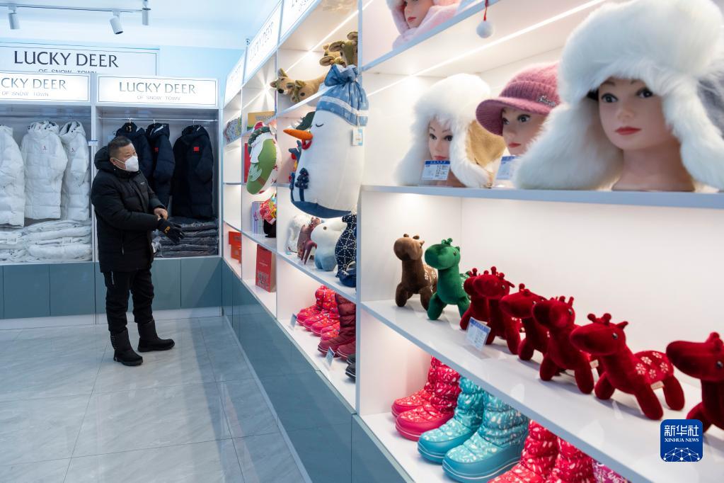 12月14日,游客在雪鄉(xiāng)景區(qū)的一個(gè)旅游紀(jì)念品商店內(nèi)選購(gòu)。新華社記者 謝劍飛 攝