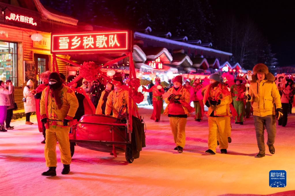 12月14日,秧歌隊(duì)在雪鄉(xiāng)景區(qū)內(nèi)表演。新華社記者 謝劍飛 攝