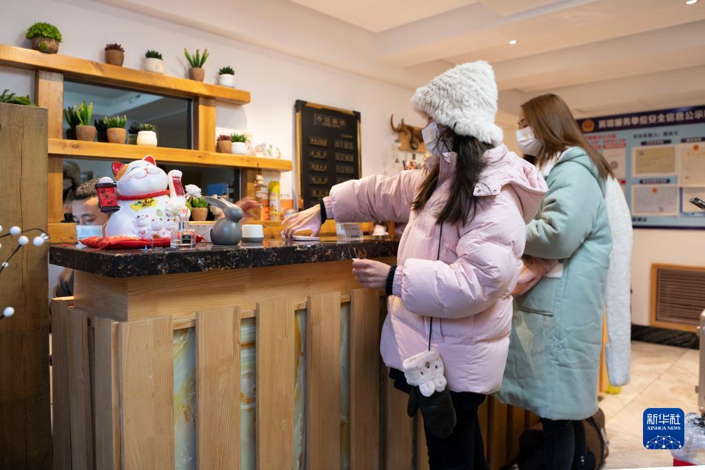 12月14日,游客在雪鄉(xiāng)景區(qū)的一家民宿辦理入住手續(xù)。新華社記者 謝劍飛 攝