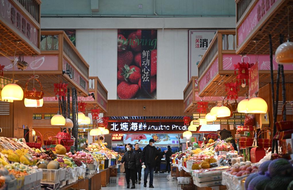居民在中新天津生態(tài)城第三社區(qū)中心菜市場內(nèi)選購食材。新華社記者 趙子碩 攝