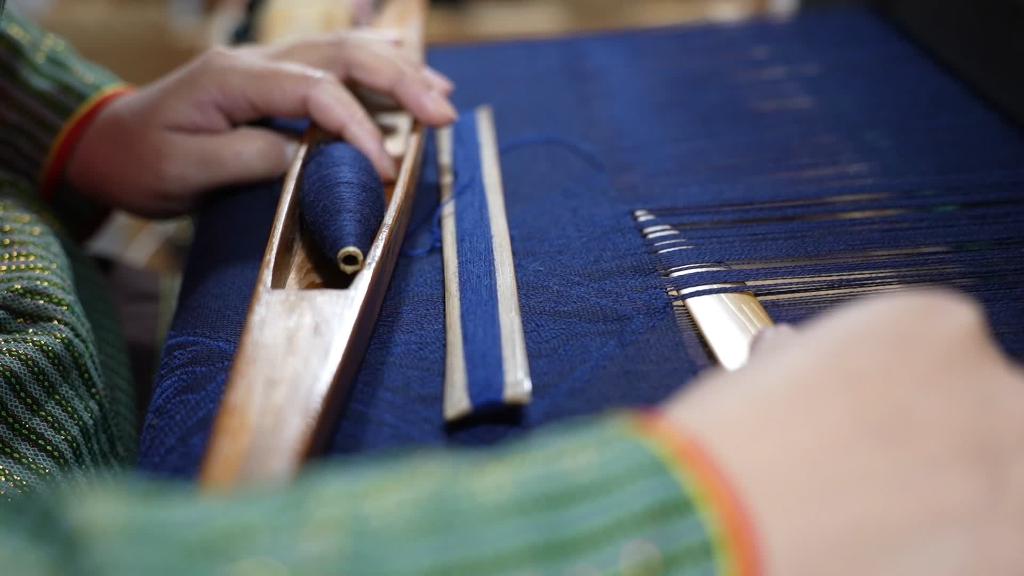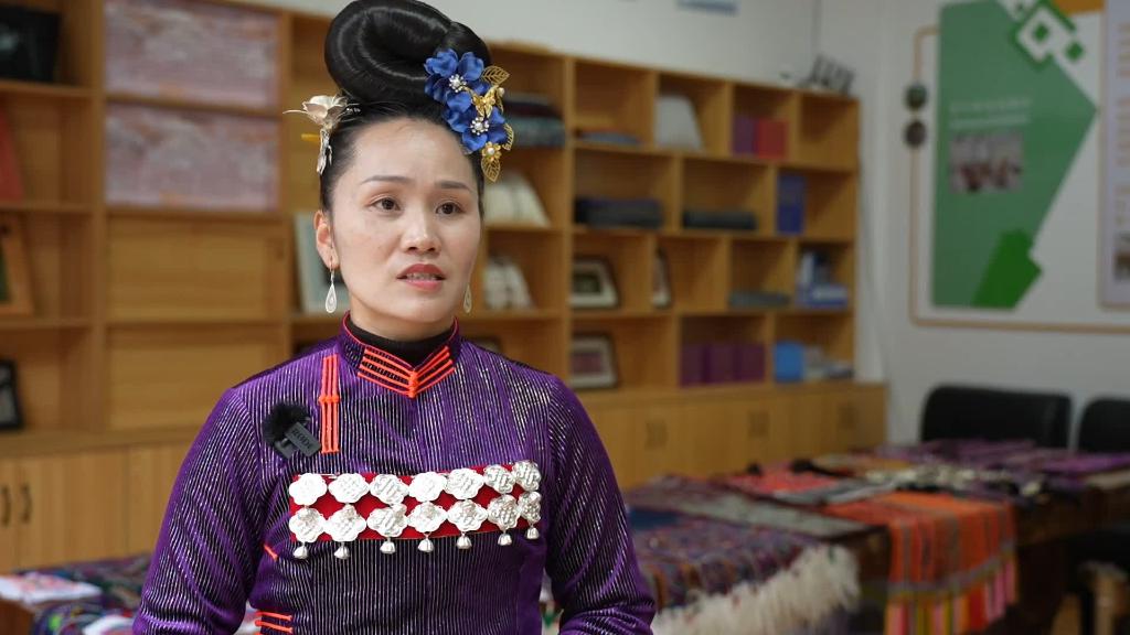 從小在雷山縣苗族村寨長大的甘小芝,8歲開始學(xué)習(xí)織錦,10歲就能自己完成種棉、紡線、排線、上機(jī)、刺繡等整套織錦流程。如今的她已是國家級(jí)非遺項(xiàng)目苗族織錦技藝的省級(jí)代表性傳承人。