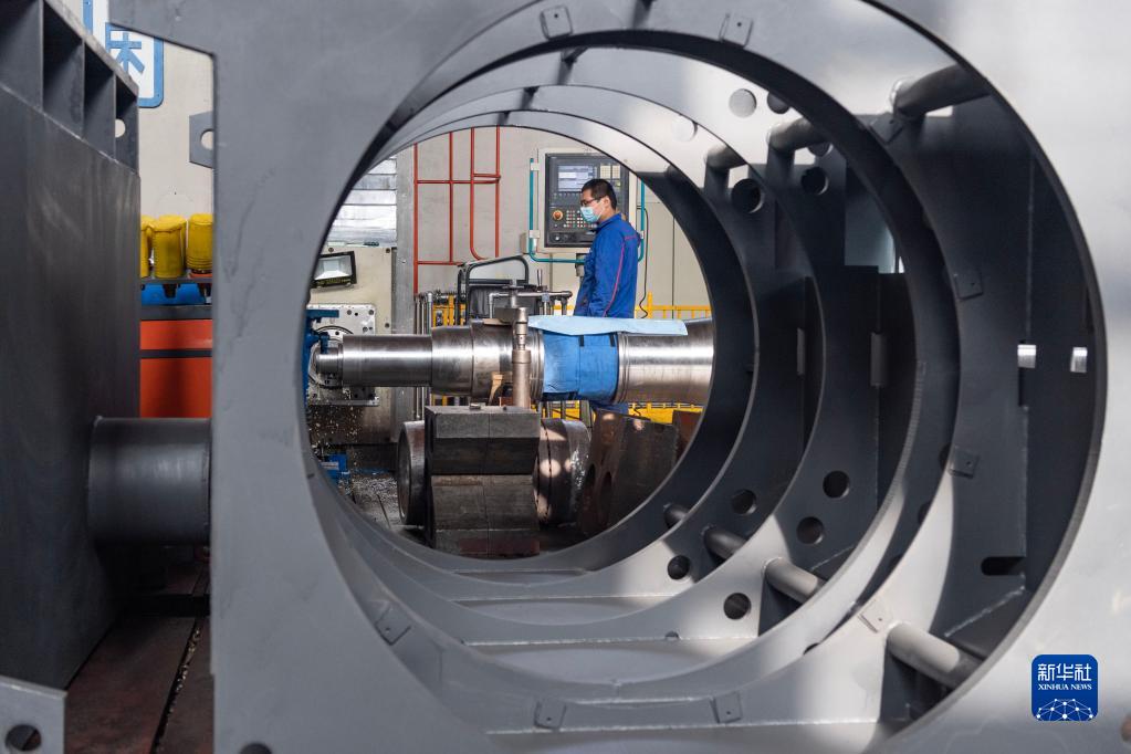 工人在哈電集團(tuán)佳木斯電機(jī)股份有限公司生產(chǎn)車間內(nèi)作業(yè)(4月4日攝)。新華社記者 謝劍飛 攝