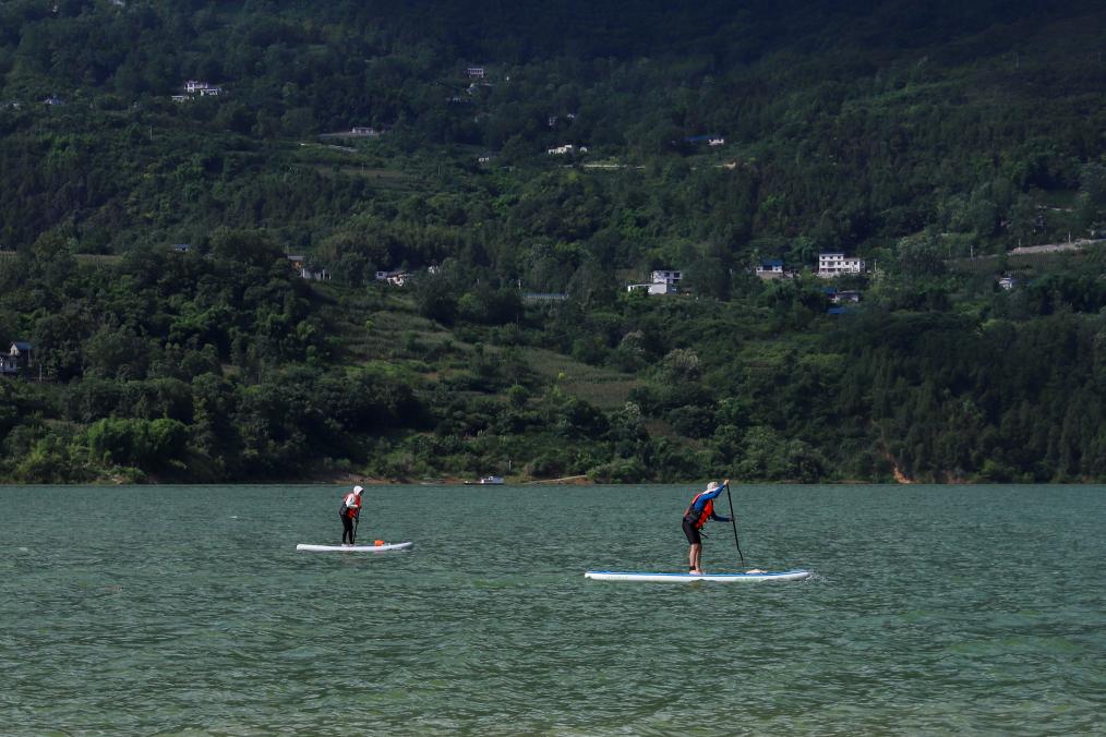 槳板選手在清江賽場訓練。(杜子璇 攝)