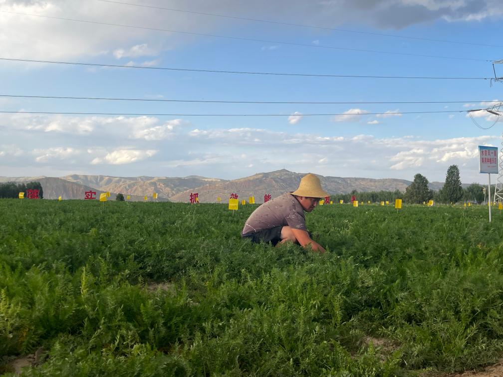 烈日當頭,在甘肅隴西縣首陽鎮董家堡村,38歲的農民閆百平正在自家中藥田里拔草,防風、紅芪等藥材長勢旺盛。