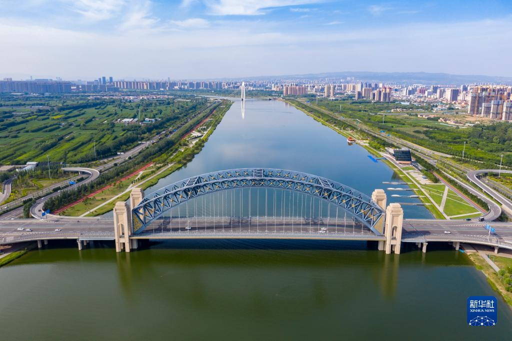 這是2023年6月27日拍攝的太原市汾河(無人機照片)。新華社記者 楊晨光 攝