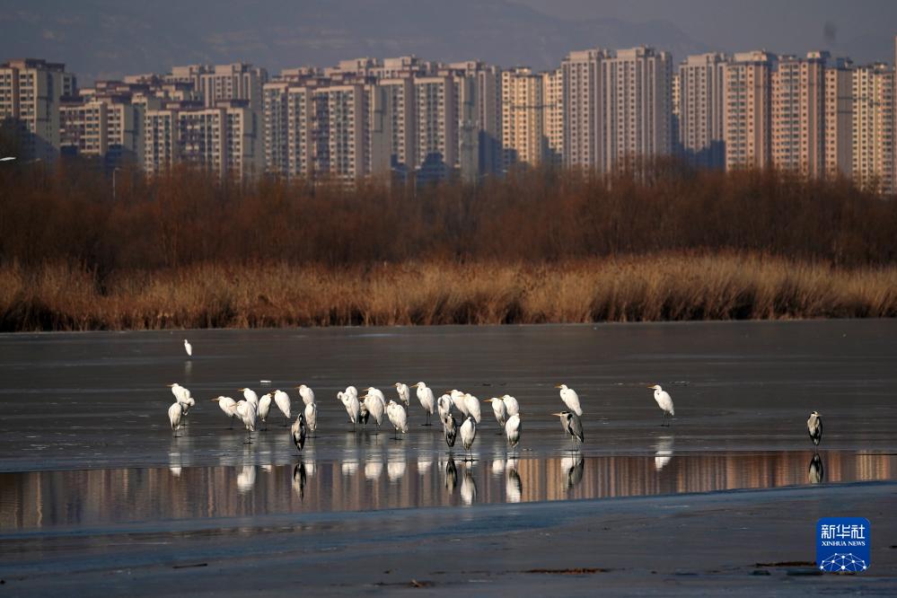 水鳥在太原市汾河棲息(2023年1月4日攝)。新華社記者 詹彥 攝