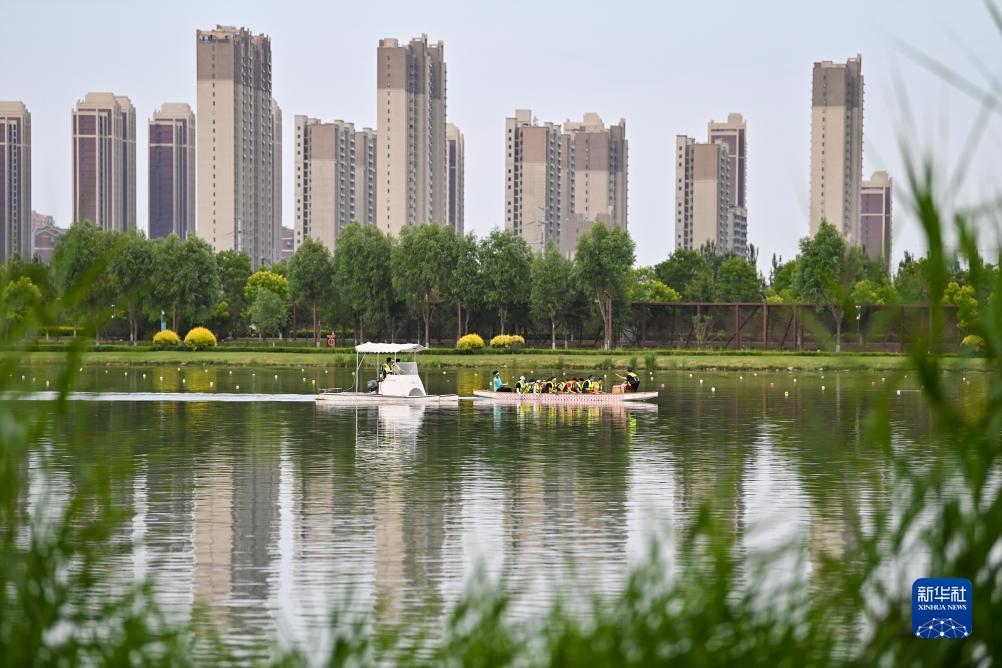 一支龍舟隊在太原市水上運動中心訓練(2023年6月27日攝)。新華社記者 楊晨光 攝