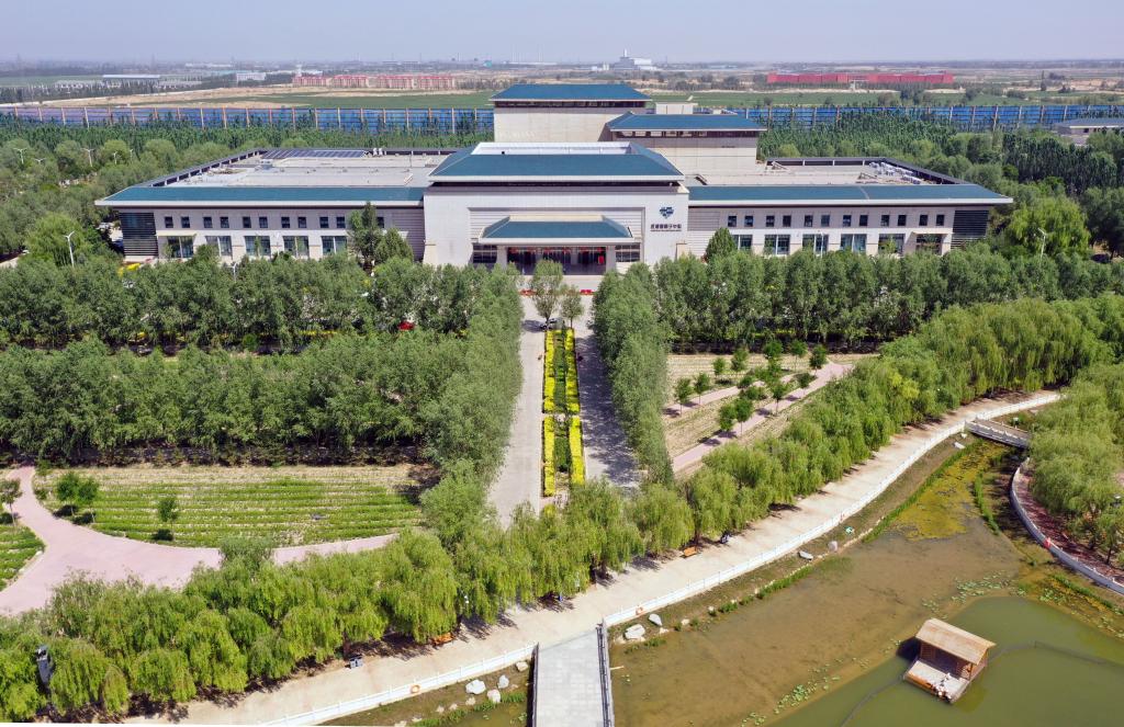 這是綠樹(shù)環(huán)繞下的甘肅省武威重離子中心(2023年6月16日攝,無(wú)人機(jī)照片)。新華社記者 郭剛 攝