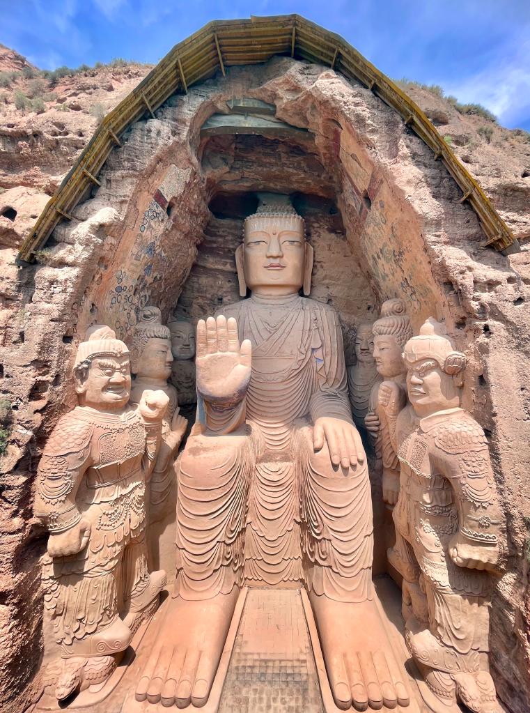 這是位于黃羊河水庫(kù)之濱的“石窟鼻祖”——甘肅省武威市天梯山石窟(2023年6月14日攝)。新華社記者 郭剛 攝