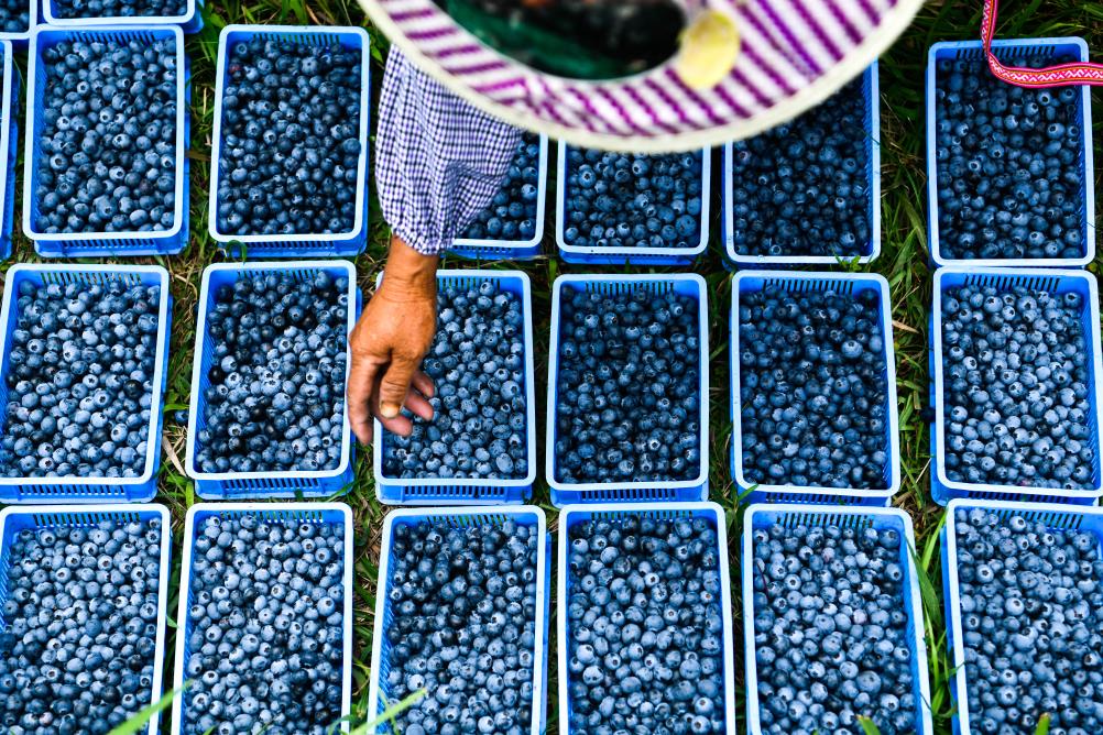 半人高的樹上,身披“白霜”的藍莓果掛滿枝頭;冷庫中,一箱箱顆粒飽滿、顏色發紫的藍莓鮮果等待出山進城;流水線上,藍莓汁、藍莓果醬成批產出……從貴州黔東南、黔南、安順等藍莓主產區出發,藍莓“盛裝”走向大市場。