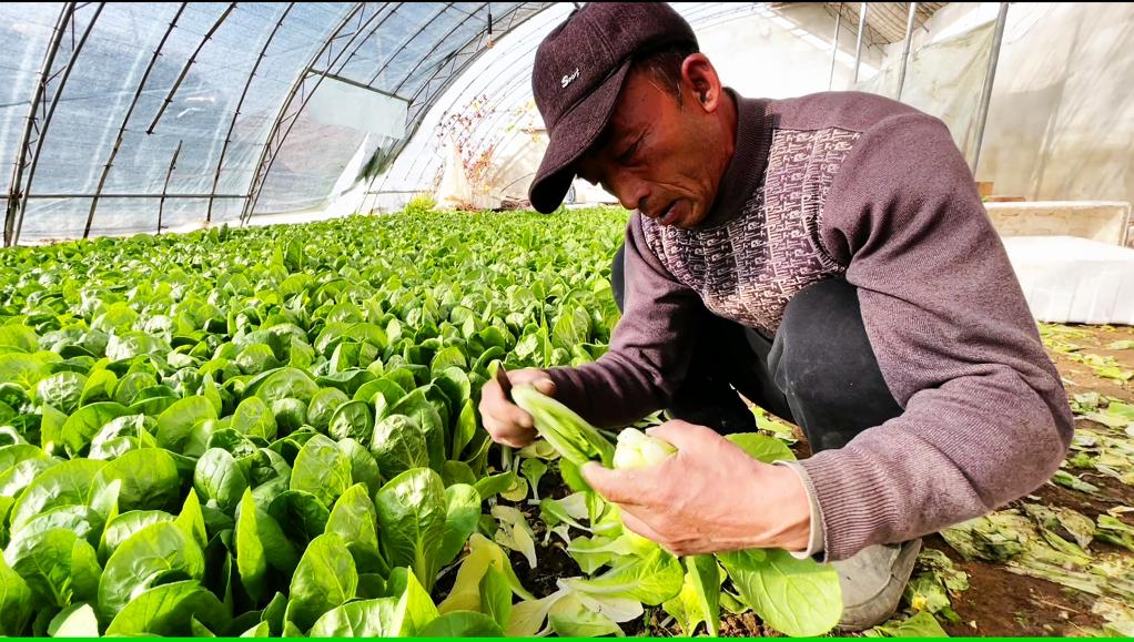 在他的溫室大棚里,水肥一體化裝備可實(shí)現(xiàn)精準(zhǔn)灌溉、施肥,數(shù)字化監(jiān)測(cè)設(shè)備能及時(shí)干預(yù)棚內(nèi)環(huán)境。正值蔬菜成熟期,一大片翠綠的油菜等待收割,四五個(gè)工人忙著采摘、分揀、裝筐。