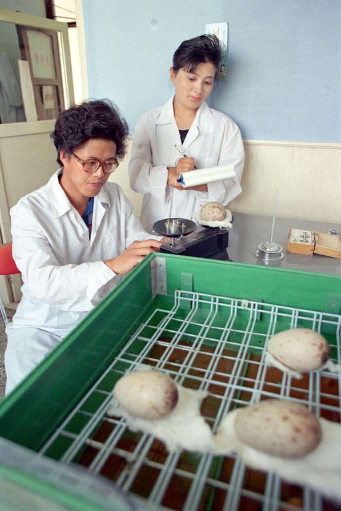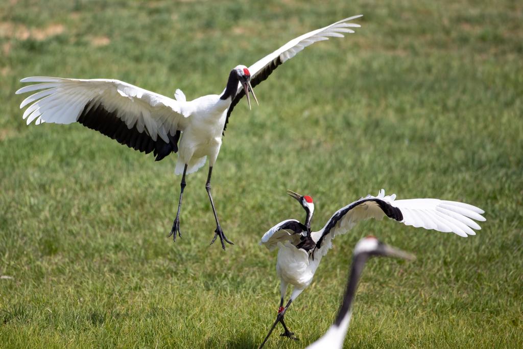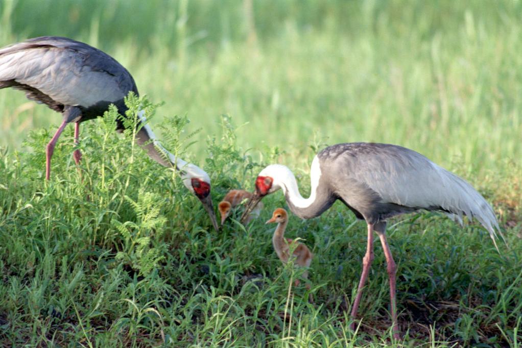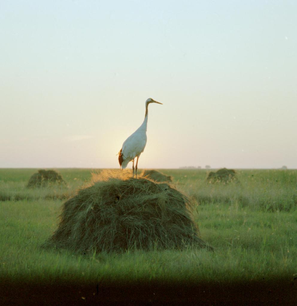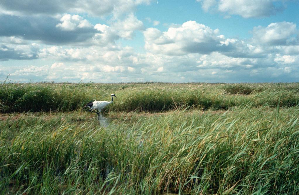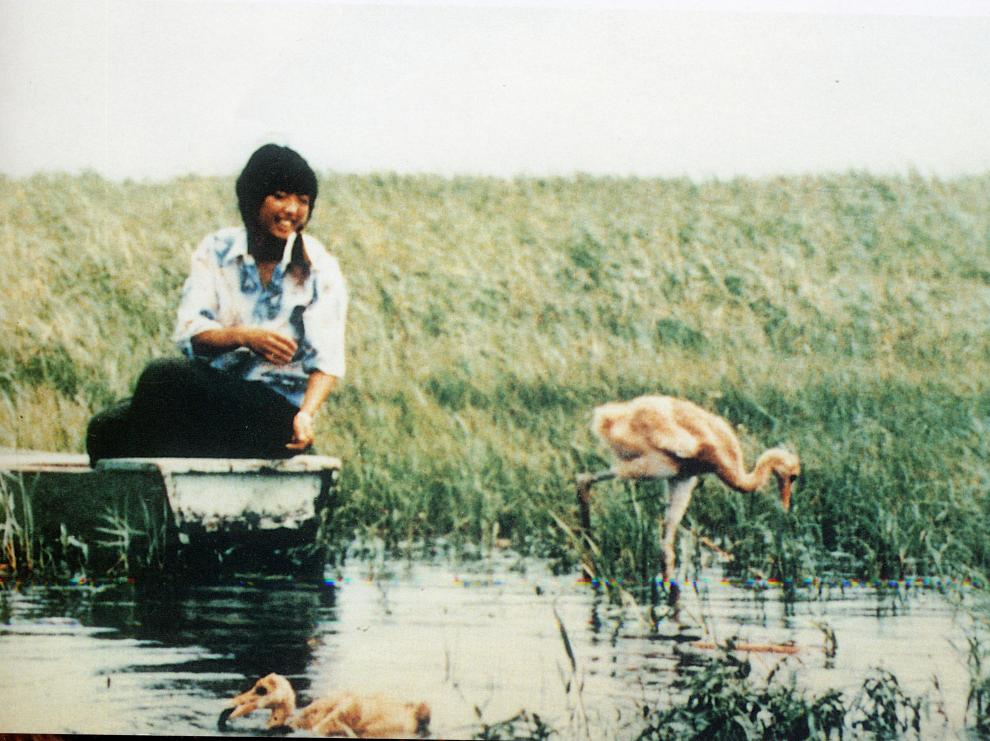 1981年在扎龙自然保护区苇塘中拍摄的丹顶鹤。