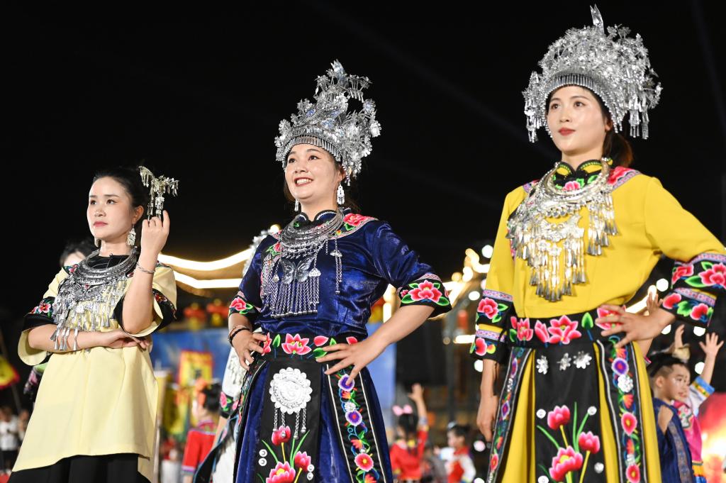 6月14日,贵州省松桃苗族自治县沙坝河乡村民在“村晚”舞台走秀。(谢慧芳 摄)