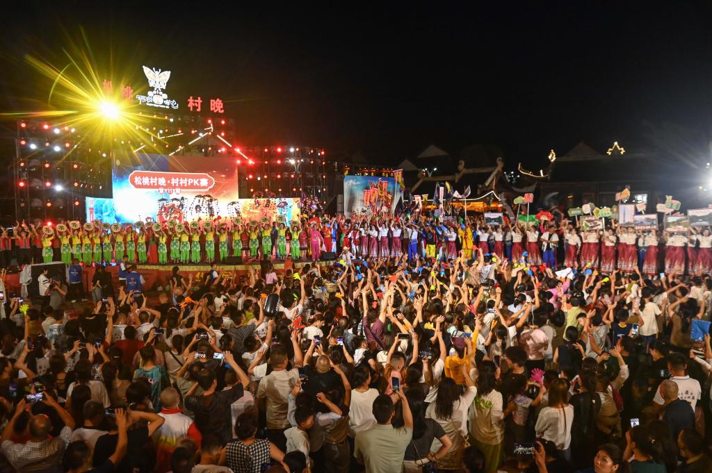 松桃“村晚”由村民自编自导,县文化馆积极指导,设村村PK赛、小组冠军赛、年度总决赛,每次赛事包含“村官说村”“村货出村”“一村一特”“我爱我村”等环节,既展示民族文化,又推广农特产品。