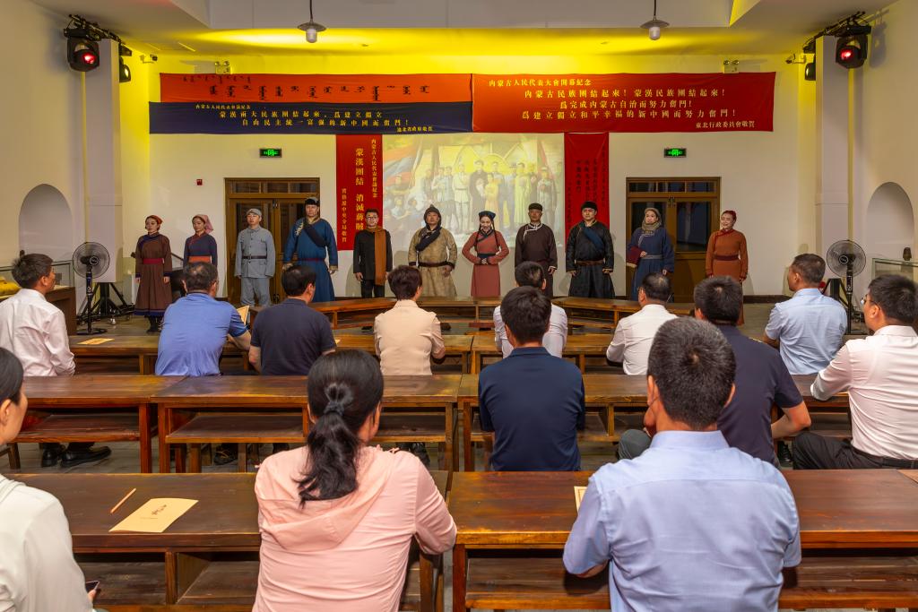 这是红色情景剧《曙光初照》在内蒙古民族解放纪念馆演出。(乌兰 摄)