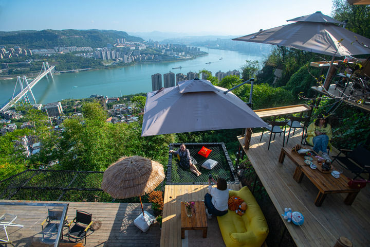 修山,让城市“疤痕”焕新颜。在周家坝街道天生城社区,曾经荒草丛生的边坡坎崖,如今已改造成半山公园,草坪上常有市民围坐在一起谈天说地,共享美食。
