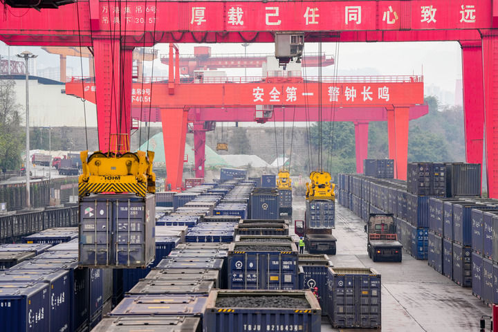 西向、北向,深度对接中欧班列,常态化开行到成都、西安、达州的多式联运班列,成功开辟中欧班列进口粮食铁水联运新通道、开行新疆哈密—重庆万州共建国家物流枢纽首发铁路班列;