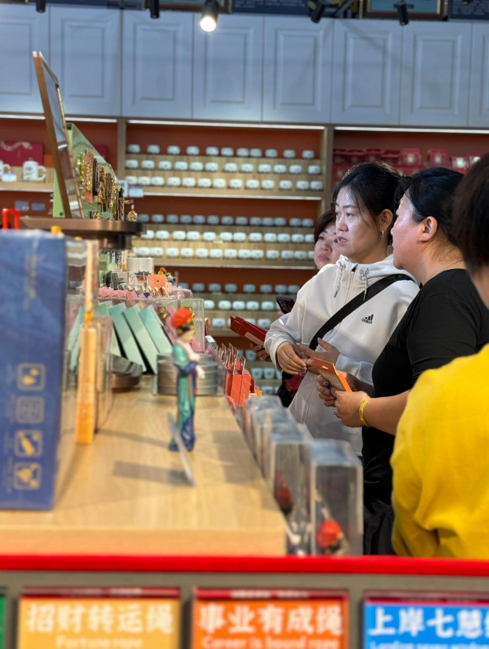 游客在晋祠博物馆挑选文创产品。新华网 王梦佳 摄