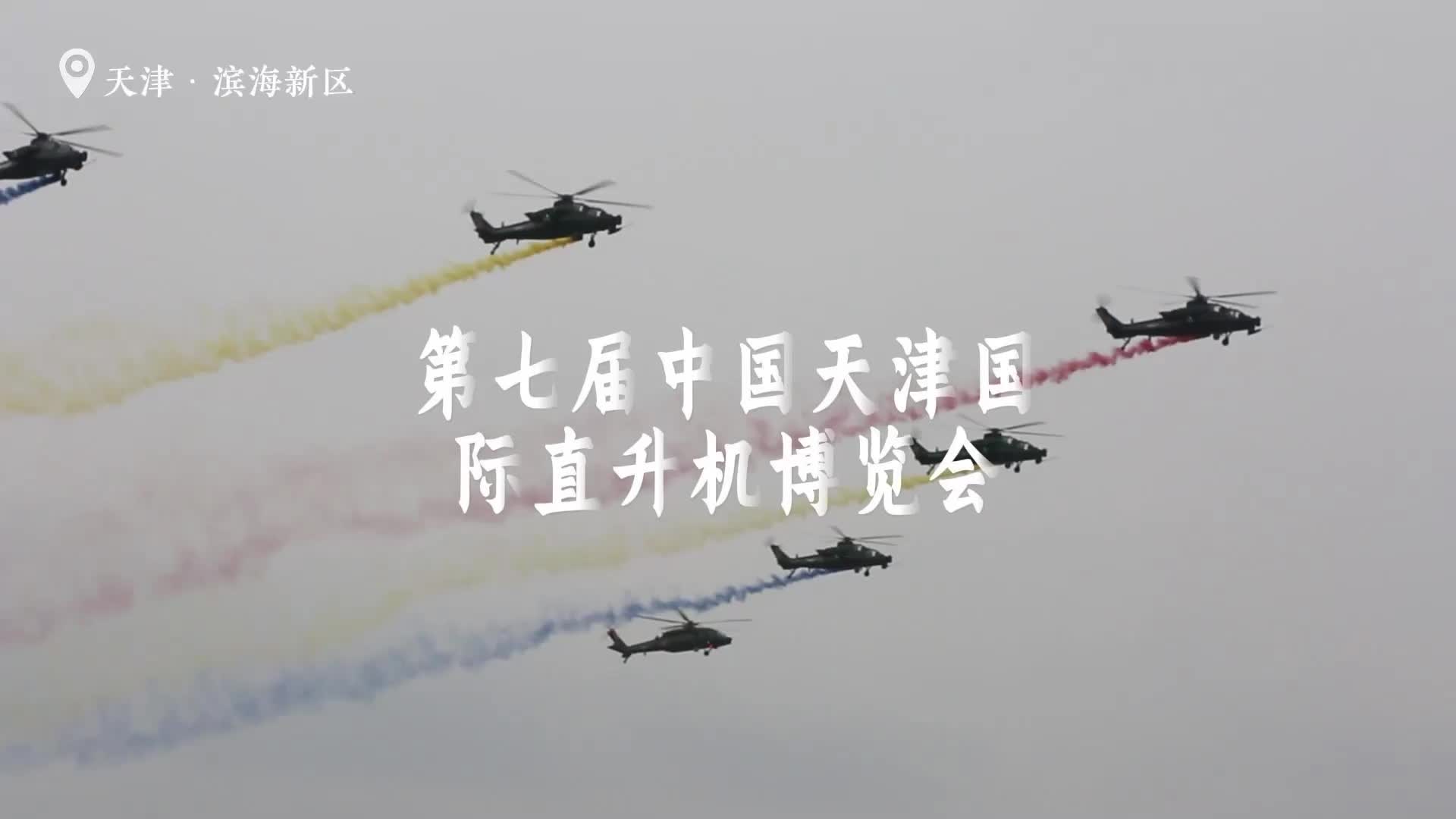 第七届中国天津国际直升机博览会开幕 七机编队低空拉烟通场-新华网