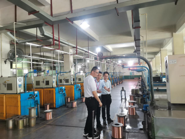 走进深圳市神州线缆有限公司(以下简称“神州线缆”)生产车间,工人正马不停蹄加紧生产铝合金线,生产车间里的机器有序运转,粗大的铜包铝合金线条随着机器不断地拉丝,最后变成了细小的铝合金线,一捆捆的铜包铝合金线堆放在地面,工人们忙碌穿梭将铜包铝合金线装车。