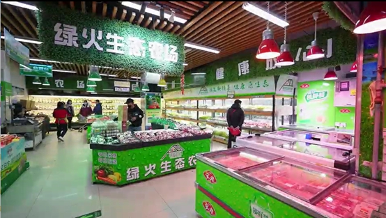 如今,绿火农场借助科技实现了跨越式发展。农场积极引进现代化农业系统,实现了从采摘后到客户的全线上化管理,直接人力减少100余人次,亩产量稳步提升,亩均创收达8万元。在销售方面,农行充分发挥自身平台优势,为农场开辟了新的销售渠道。刘金成介绍说:“我们根据绿火农场果蔬的成熟时间段,将产品上线农行微银行销售平台,这一举措不仅助力了节日期间的市场供给,也极大地拓宽了农场产品的销售路径。”与此同时,农场通过建立抖音号开展直播销售,在东单菜市场超市的绿火专区,800平方米的区域内陈列着近50种生鲜产品,“从地里到嘴里”的新鲜直供模式深受消费者青睐,有效激发了消费市场的活力,满足了消费者对高品质生鲜产品的需求。