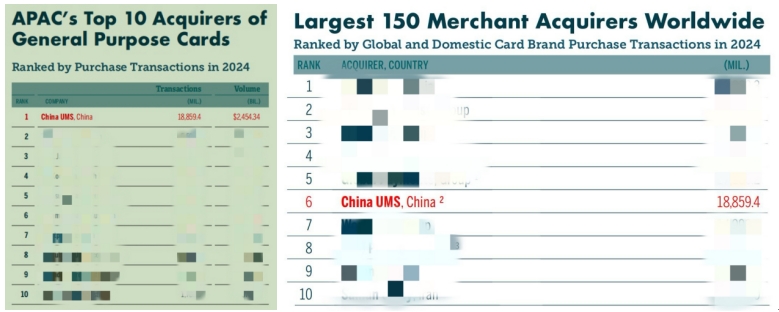 近日,全球知名银行卡和移动支付行业调研机构HSN Consultants, Inc.在Nilson Report中正式公布《2024年度亚太地区收单机构排名》《2024年度全球收单机构排名表》(按全卡种清算交易笔数排名),银联商务连续十二年蝉联亚太收单机构榜首,全球排名继续稳固在第六位,稳居国际支付行业第一梯队。