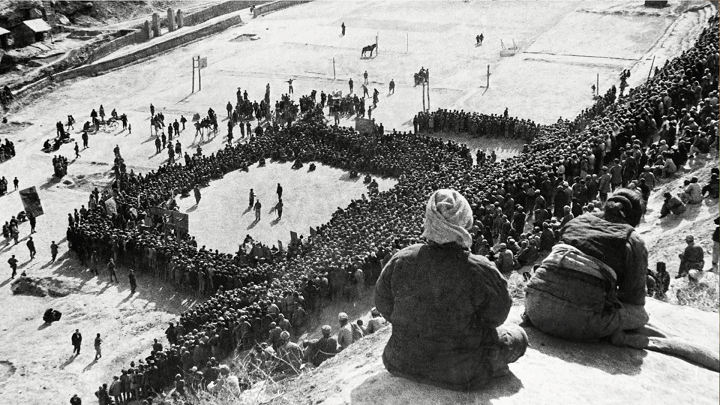 ▲1939年,冼星海指挥鲁艺学员排练《黄河大合唱》(资料照片)。延安文艺纪念馆提供
