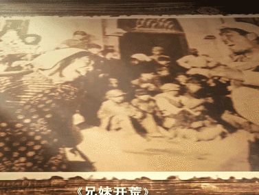 ▲延安机关干部在窑洞前摇车纺线。新华社发