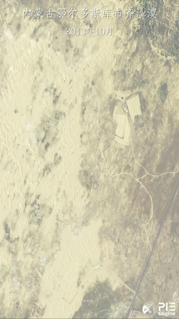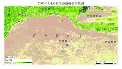 ▲库布其沙漠2000年7月与2019年7月植被指数对比图。来源:国家林业和草原局
