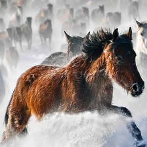 冬日,在新疆伊犁哈薩克自治州昭蘇縣,駿馬奔馳在雪原上,成為當地冬季特有的風景。